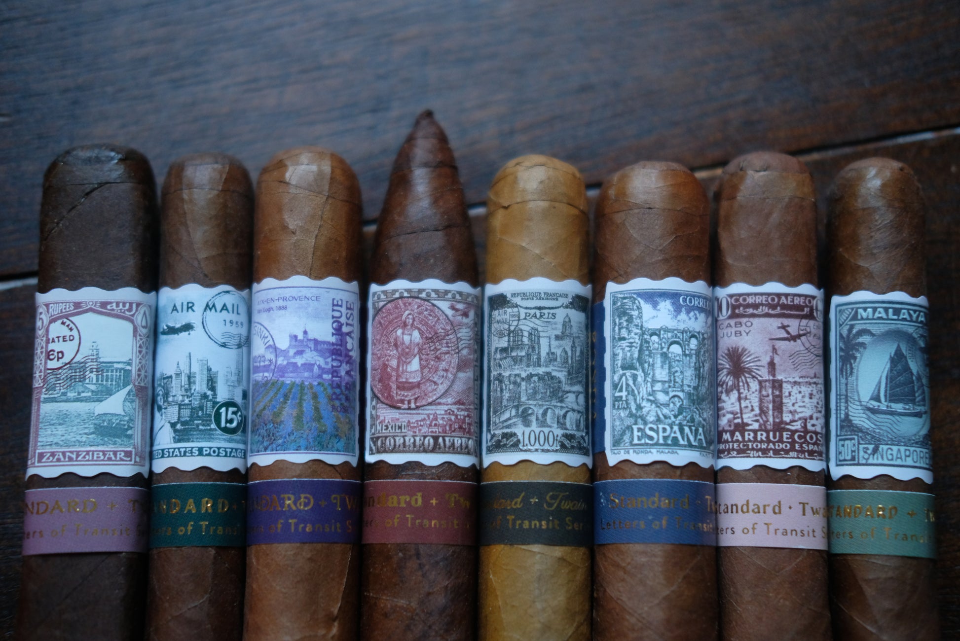 Eight cigars each blended to capture the flavor and spirit of eight different locales around the world. Collaborating with four of the most respected master-blenders in the industry, from four different factories, we are proud to introduce the Letters of Transit Collection. We hope that just as travel is said to broaden the mind, these cigars will expand your palate and appreciation for the diverse tastes found across the globe.